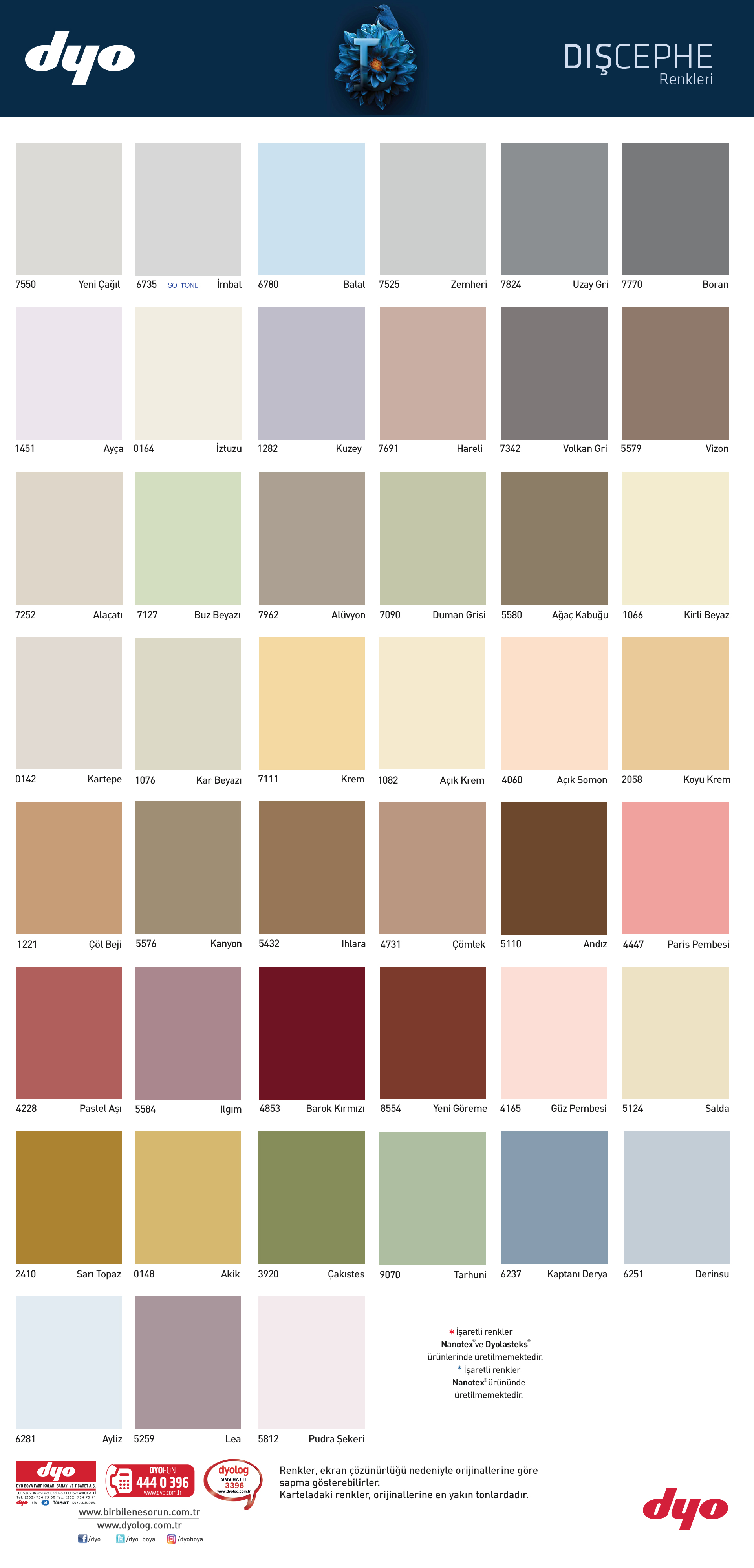 Dış Cephe Boyaları Renk Kartelası için tıklayınız...
